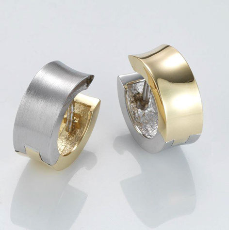 Description: Yellow gold/white gold reversible huggie earrings of finest quality in matt or polished finish