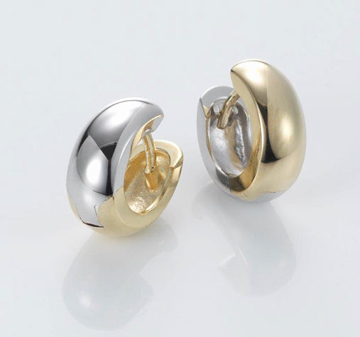 Description: Yellow gold/white gold reversible huggie earrings of finest quality in polished finish