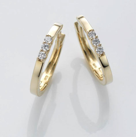 Description: Yellow gold huggie earrings of finest quality in polished finish