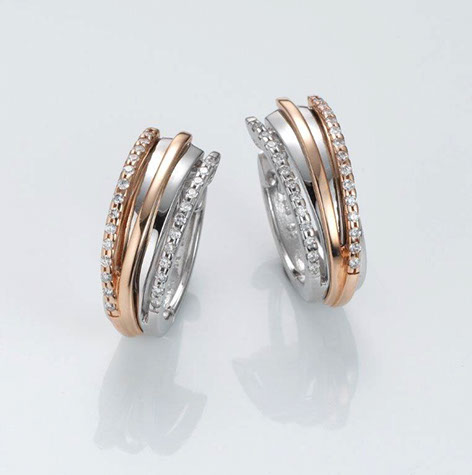 Description: White gold/rose gold huggie earrings of finest quality in polished finish