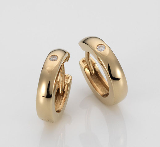 Description: Yellow gold huggie earrings of finest quality in polished finish