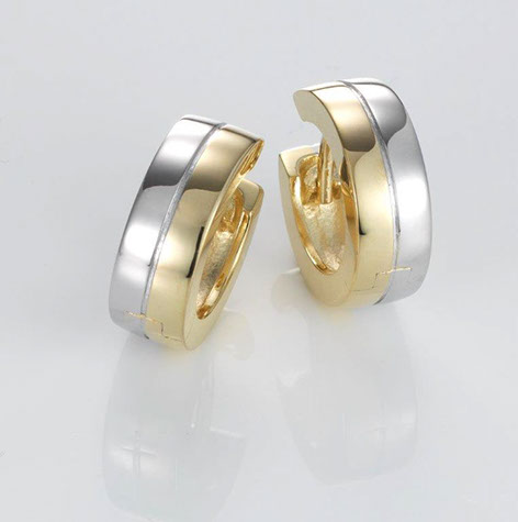 Description: Yellow gold/white gold huggie earrings of finest quality in polished finish