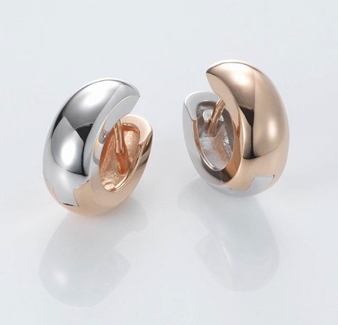 Description: Rose gold/white gold reversible huggie earrings of finest quality in polished finish