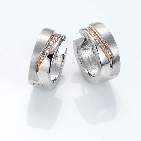 Description: White gold/rose gold huggie earrings of finest quality in matt and polished finish